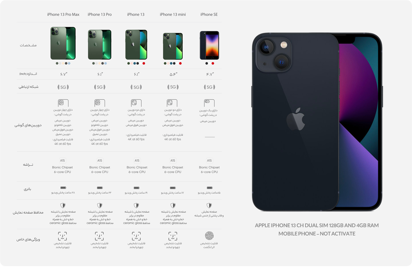 Daria bond 5G Dual SIM 128GB And 8GB RAM Mobile Phoneگوشی موبایل iPhone 13 CH پرچمدار جدید شرکت اپل است که با چند ویژگی جدید و دوربین دوگانه روانه بازار شده است. نمایشگر آیفون 13 به پنل Super Retina مجهز شده است تا تصاویر بسیار مطلوبی را به کاربر عرضه کند. این نمایشگر رزولوشن بسیار بالایی دارد؛ بهطوریکه در اندازهی 6.1 اینچیاش، حدود 460 پیکسل را در هر اینچ جا داده است. امکان شارژ بیسیم باتری در این گوشی وجود دارد. تشخیص چهره با استفاده از دوربین جلو دیگر ویژگی است که در آیفون جدید اپل به کار گرفته شده است. از نظر سختافزاری این گوشی از تراشهی جدید A15 بهره میبرد که دارای 15 میلیارد ترانزیستور است که دارای کنترل گرمای مطلوبی بوده که تا بتواند علاوه بر کارهای معمول، از قابلیتهای جدید واقعیت مجازی که اپل این روزها روی آن تمرکز خاصی دارد، پشتیبانی کند.